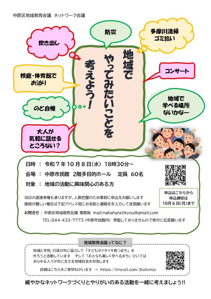 問い合わせ先:中原区地域教育会議 事務局(中原市民館内)